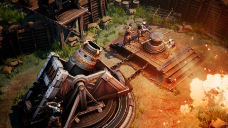 По мере прохождения вы выбираете один из двух путей развития: Священный Джаггернаут для агрессивного высокого урона или Несгибаемый Стойкий для обороны и долгой борьбы. Собирайте божественные реликвии и посвящайте выполненные задания разным богам Пантеона, чтобы получать уникальные благословения. Когда слава Титуса доходит до местных военачальников, они шлют целые армии на форт ордена. Тогда игра переходит в гибридный режим: вы сражаетесь на земле, ставите ловушки, турели и баррикады, отдаёте приказы союзникам и одновременно руководите обороной. Плюс можно вербовать и спасать новых членов ордена — каждый приносит свои навыки, которые помогают и в бою, и в защите крепости.